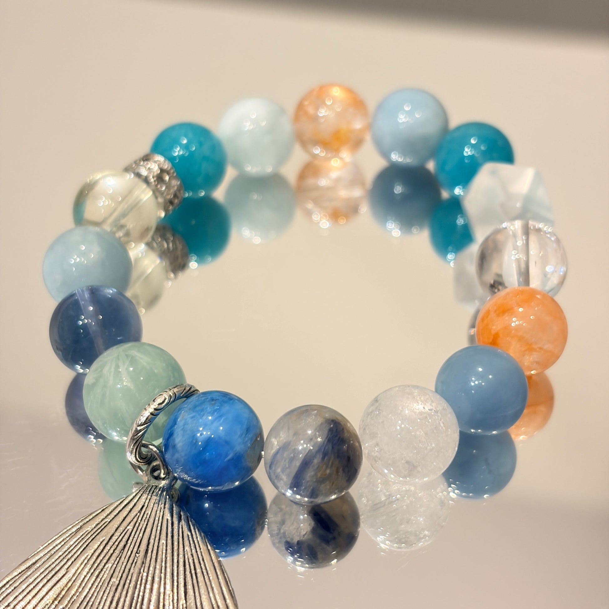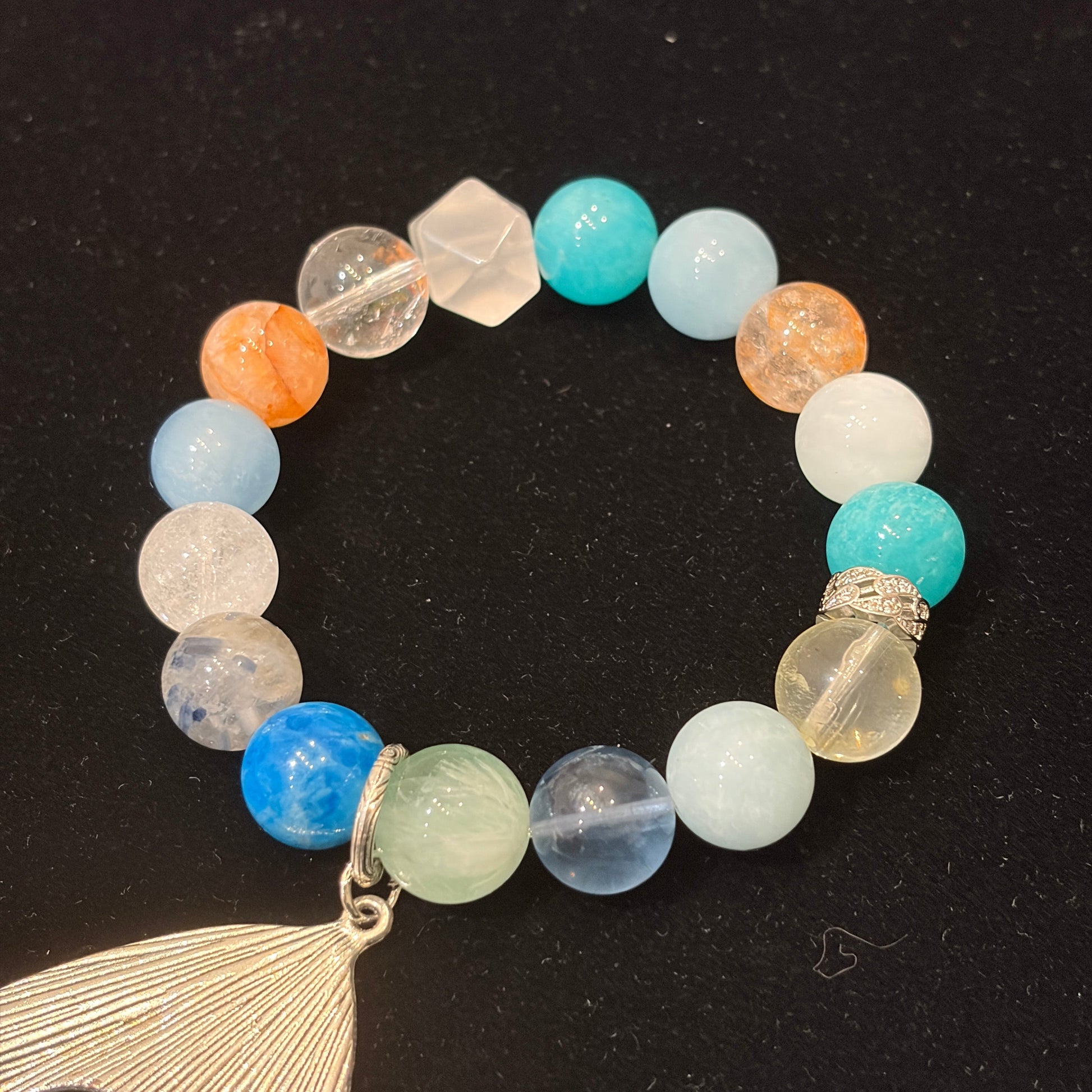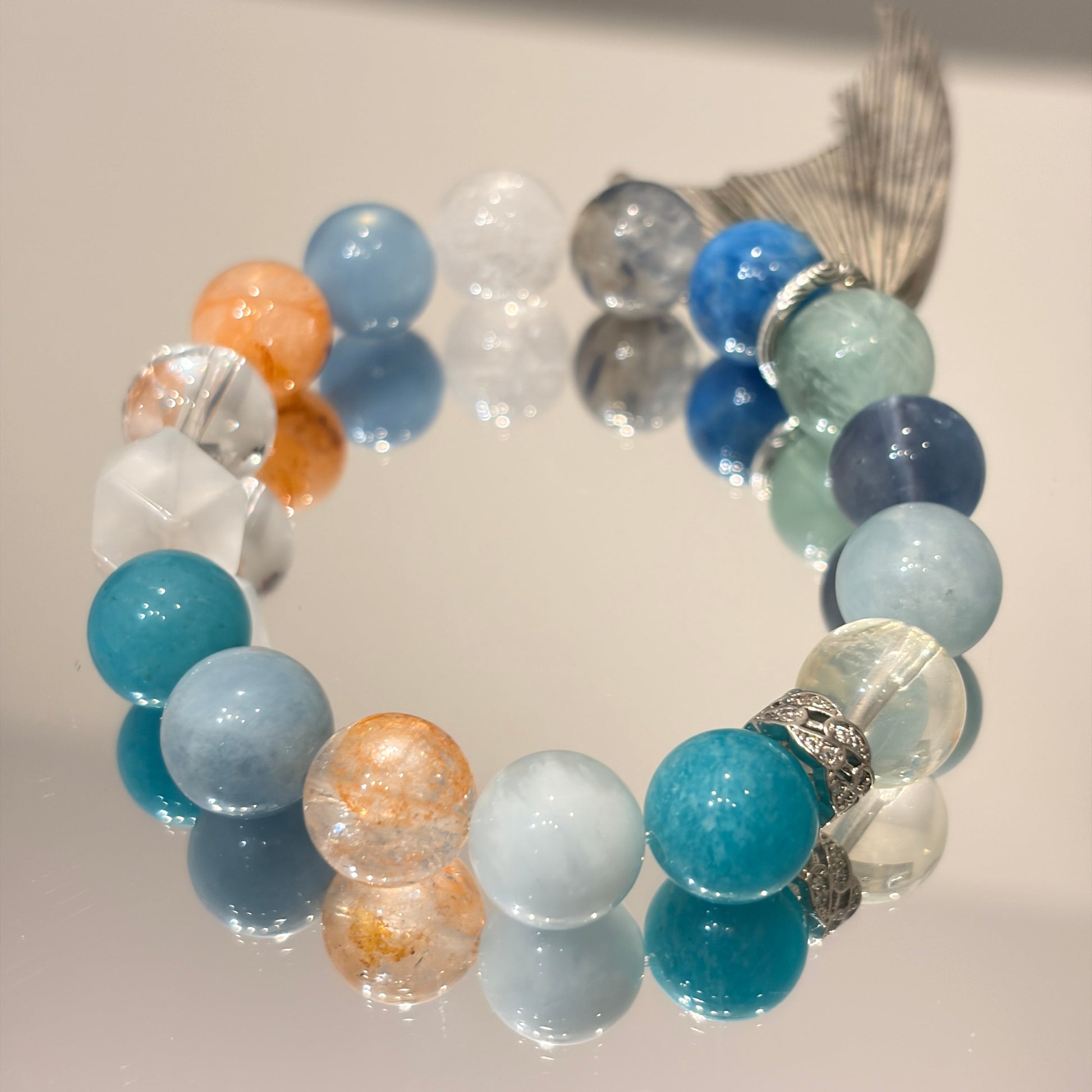 This bracelet evokes sunshine, waves, sea breeze, and the feeling of freedom. Its light and refreshing color palette feels like wearing the essence of a summer coastline.